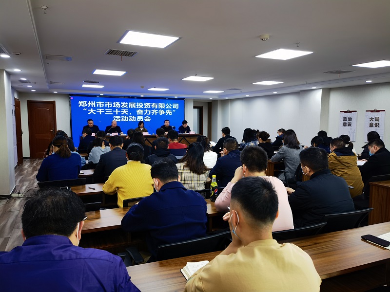 12月6日下午,鄭州市市場(chǎng)發(fā)展投資有限公司召開(kāi)“大干三十天,奮力齊爭先”活動(dòng)動(dòng)員會(huì )。公司常務(wù)副總經(jīng)理趙潔,黨委委員、工會(huì )主席龐曉冰,黨委委員、總經(jīng)理助理孫濤,黨委委員、綜合管理中心總監楊哲,黨委委員、財務(wù)管理中心總監逯衛川出席。